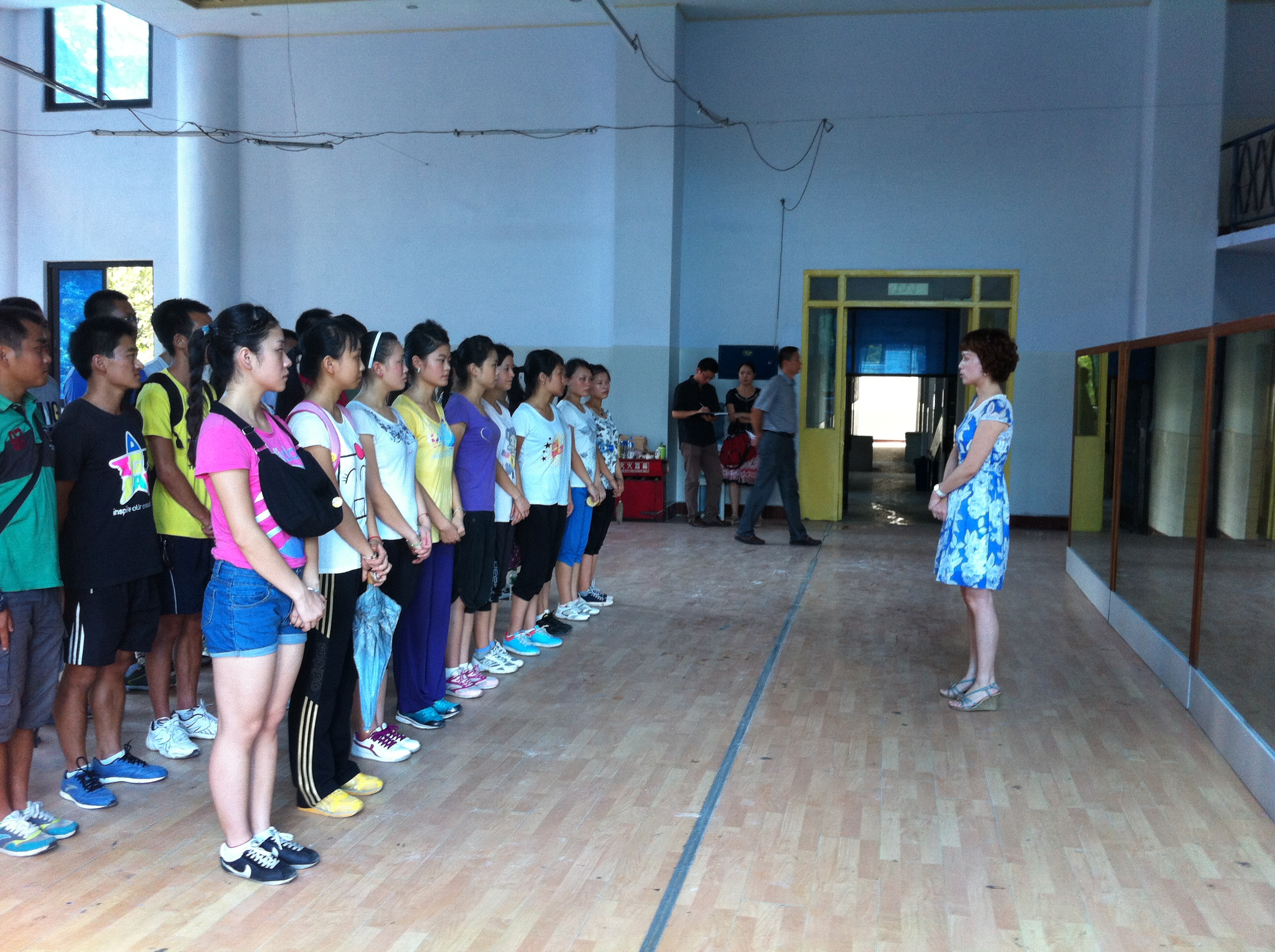 大会上,体育系佘涛书记向不畏酷暑,辛勤训练的运动员们表示感谢与慰问。他鼓励同学们要在教练的带领下认真训练,为本次广播操比赛做好充分准备。同时,他还提醒队员们要在平时训练中注意人身安全,注意防暑。学工部毛玲副处长对同学们在以往比赛中取得的优异成绩给予了充分肯定,并希望队员们能在接下来的广播操大赛中继续发扬奋发进取的精神,为公司争光添彩。她还对训练时间的安排、及训练场地的维护提出了相关要求。最后,教练冉卫东老师在会上指出能代表公司参加本次广播操大赛是一种至高的荣誉,特别强调了本次广播操比赛的重要性,要求队员们在训练时需全身心投入,按时按质完成训练任务,并就训练计划作了相关的安排与要求。