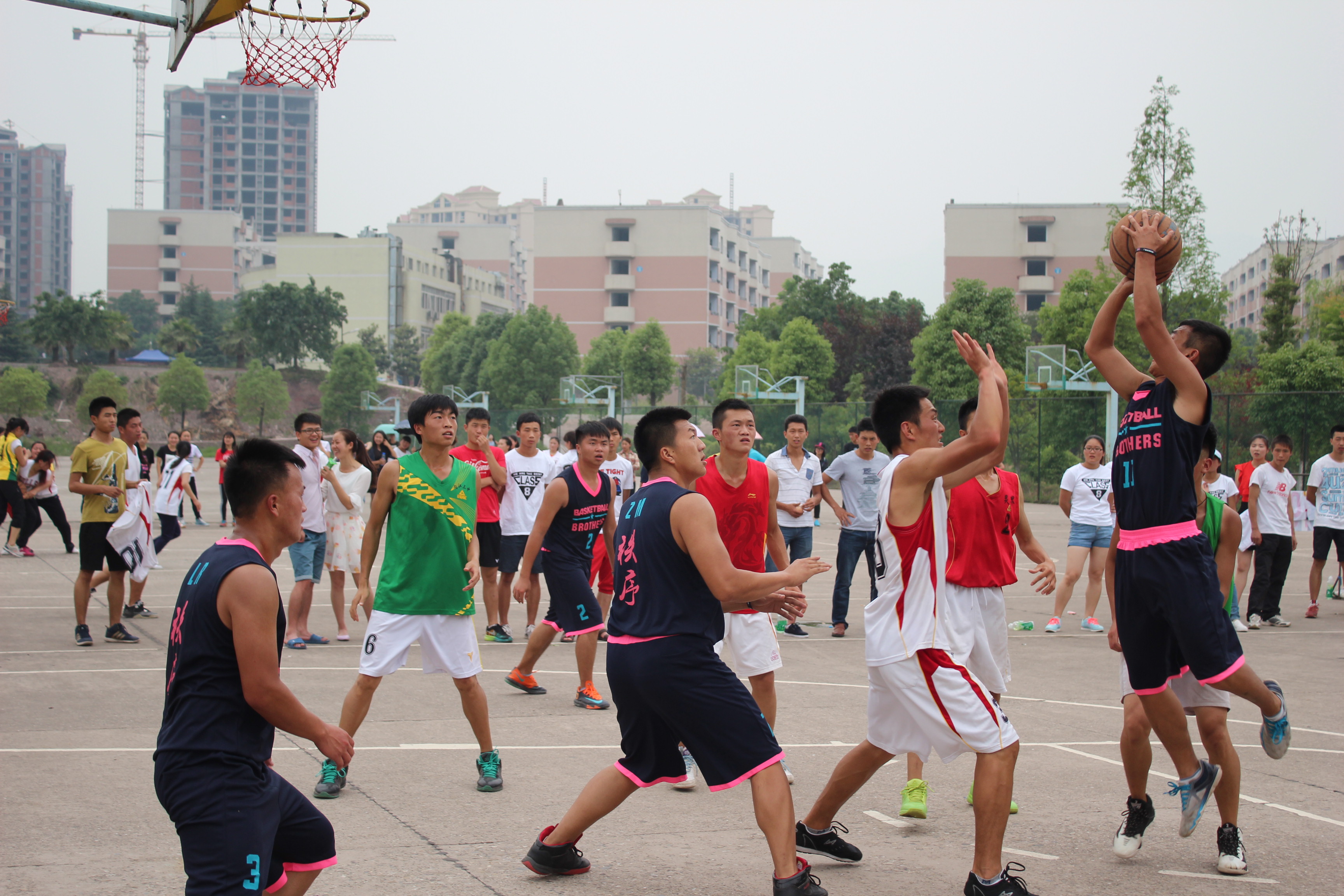 本届篮球联赛非专业组决赛,前四名分别是2012级8班、2013级8班、2014级7班、2012级5班。非专业组比赛结束后,将进行专业组的精彩PK。