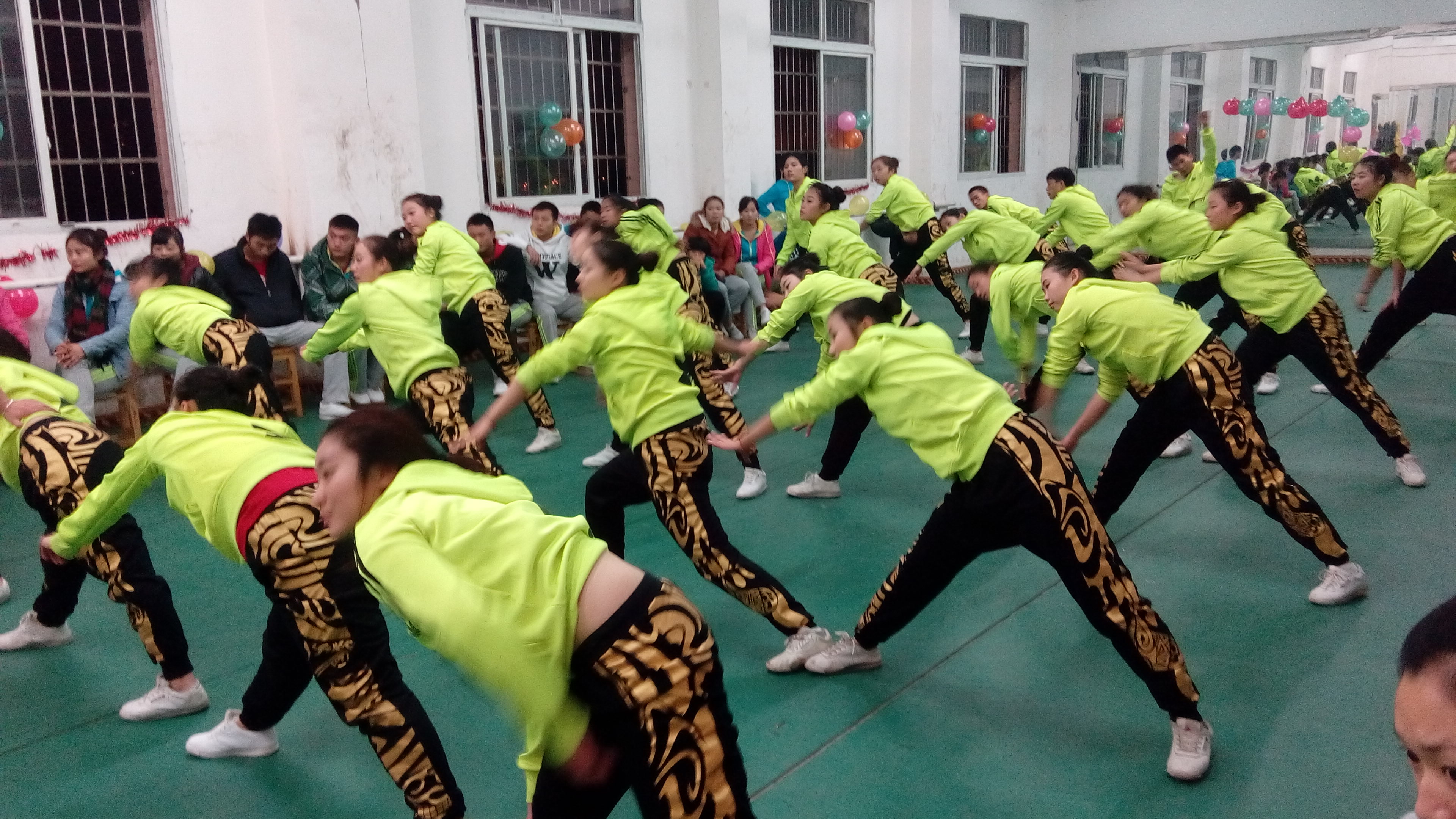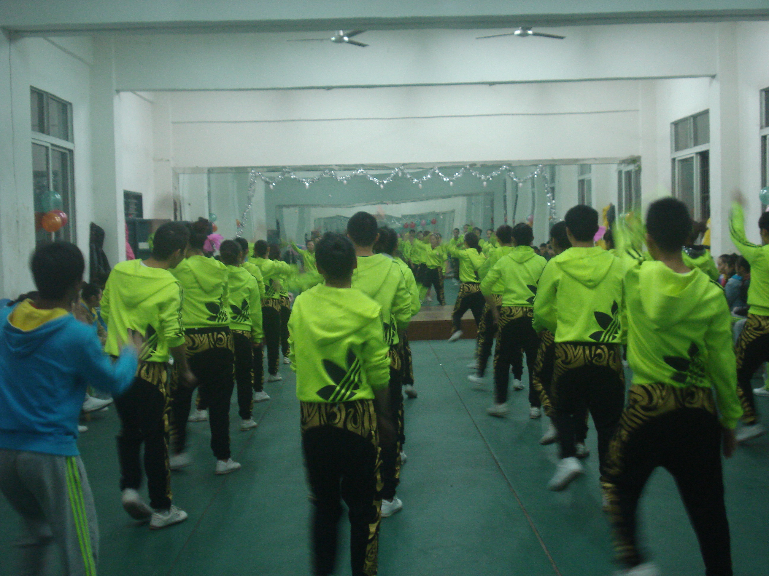 12月25日晚7点,2012级和2014级健美操班的同学们在健美操房对本学期所学的教学成果进行了汇报演出。