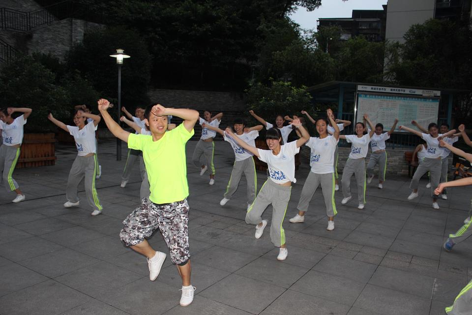 为了使排舞运动得到进一步的推广与发展,满足我市广大群众健身的愿望。 公司“排舞进社区”展演活动于6月20日晚在凰城一号社区拉开帷幕。本次活动由冉卫东老师带队,2012级4班全体同学参加。