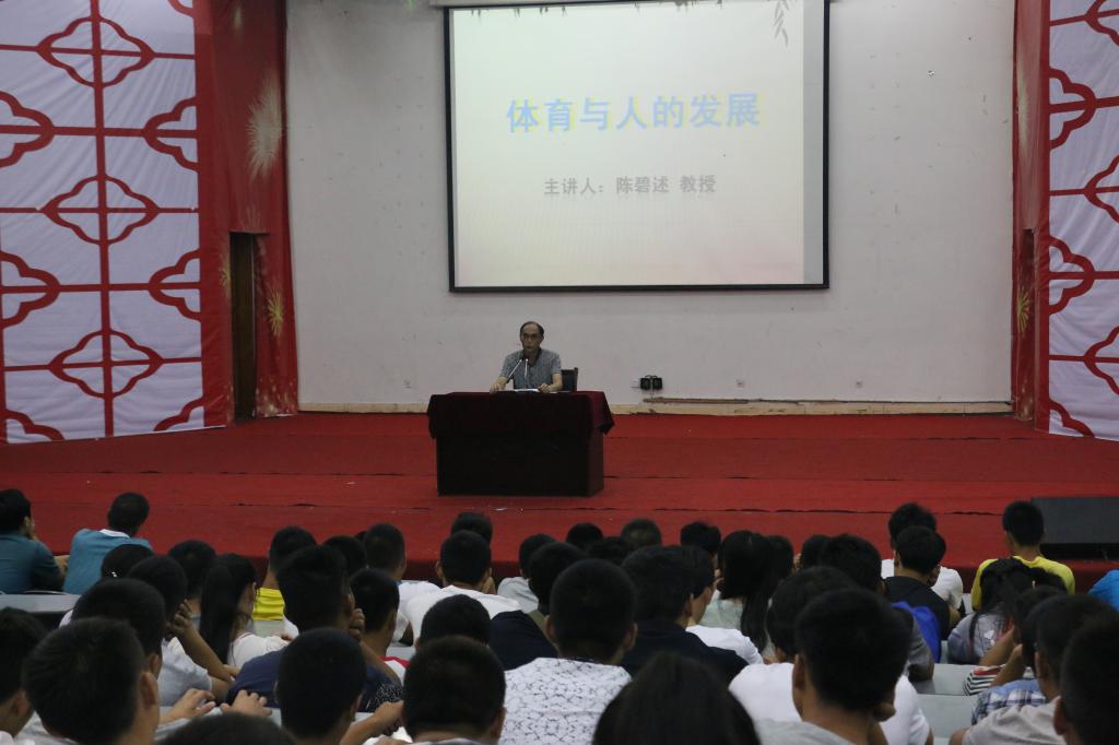 2014年9月22日19:30,陈碧述教授在莲湖校区126教室为betway西汉姆联平台师生作了题为体育与人的发展的学术报告。本次学术报告由betway西汉姆联平台党总支书记佘涛主持,现场有近600余名师生参加。