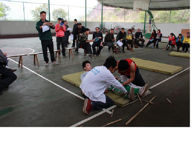 为建立体育运动安全防范工作的长效机制,2014年3月27日下午4点30分,betway西汉姆联平台结合公司开展的“应急演练”活动,根据自身专业特点,在篮球棚组织全院教师进行了员工意外损伤急救知识培训。