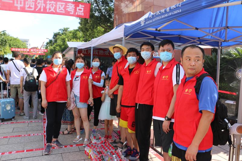 公司党总支面向全院发出此次志愿服务活动通知后,公司师生踊跃报名,很快就招募了20多名志愿者。在78日上午十点和下午四点,两支志愿者服务队冒着酷暑,佩戴好志愿服务标志,准备好物资(矿泉水和口罩)早早地来到达一中考点外。在等候考生的时间里,一些志愿者给在烈日下执勤的交警、武警和工作人员送去了矿泉水,一些志愿者跟在现场等候考生的家长们进行了亲切的交流,一些志愿者在捡拾地上的垃圾。考生交卷出来后,有的志愿者们在维持秩序,其余的则有序地给考生分发矿泉水,并送上祝福和鼓励的话语。待考生全部离场以后,志愿者们主动捡拾了散落在地上的传单和其他垃圾,保持了考场外的清洁卫生。
