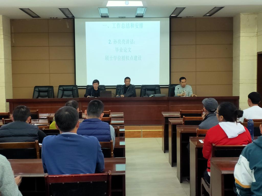 孙亮亮从论文设计指导、盲审、查重等方面,介绍了2021届毕业论文总体情况,指出了本届毕业生论文存在的问题,他强调公司要严格要求,悉心指导,提高毕业论文质量,杜绝学术不端行为。针对硕士单位授权点建设,他提出具体的要求。