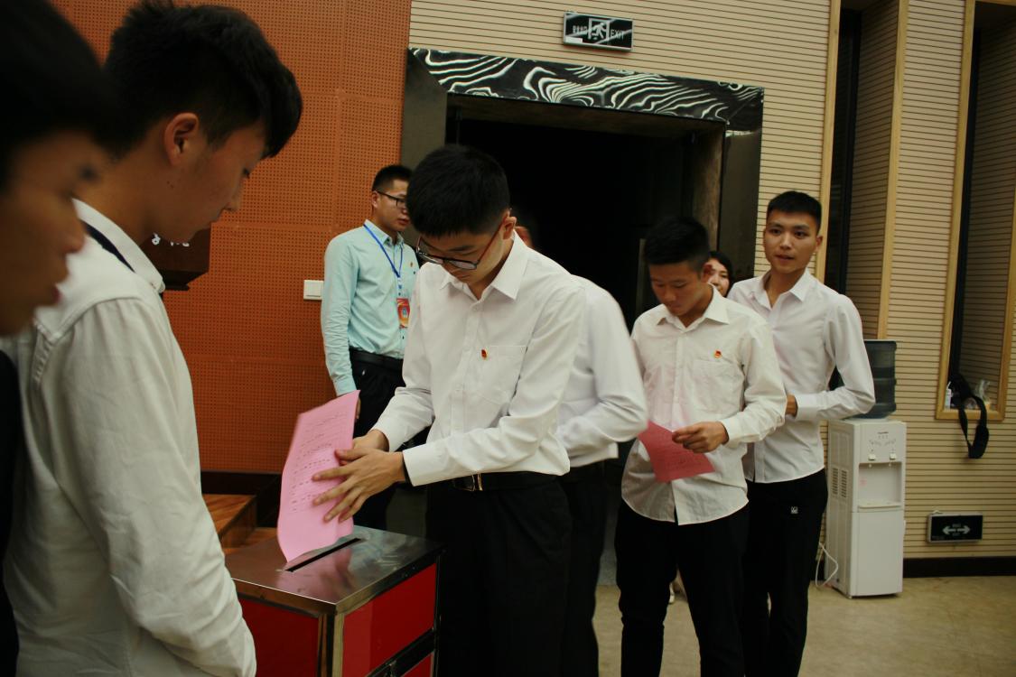 18:00由团总支副书记赵碧磊主持了大会的正式会议。公司党总支佘涛书记宣布开幕,大会在慷慨激昂的国歌声中正式开始。首先,进行了本届团学干部的见面会,颁发了上一届员工干部的聘书。会上,团总支副书记赵碧磊、员工会主席周舰分别作了工作报告,他们分别对新一届团总支员工会的发展提出了新的建议。随后进行了新一届团总支员工会员工干部的选举。会上还审议通过了《betway西汉姆联平台量化考核实施细则(2017修订版)》、《betway西汉姆联平台团总支员工会章程(2017修订版)》、院训、院徽。