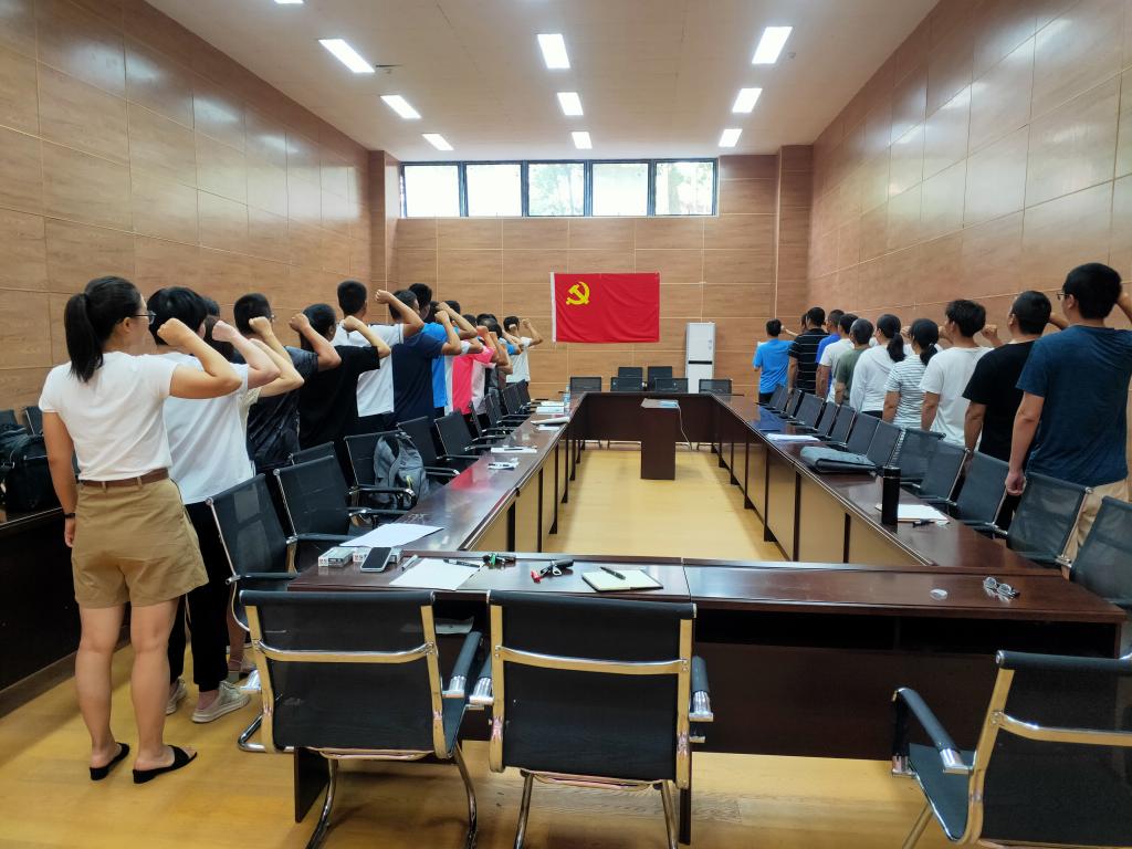 最后,在党的百年华诞之际,全体党员面对党旗重温了入党誓词。