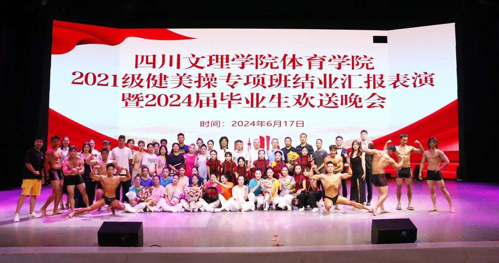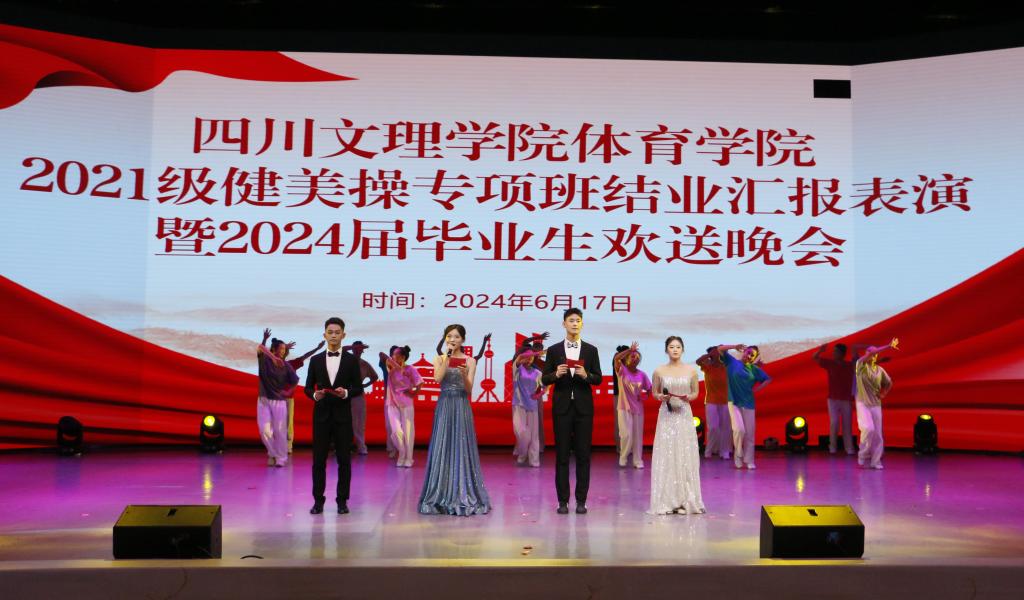 2024617日晚19:00,betway西汉姆联平台2021级健美操专项班结业汇报表演暨2024届毕业生欢送晚会在莲湖校区音乐演播厅顺利举行。四川文理公司党委常委、副董事长徐晓宗、betway西汉姆联平台党政领导、专兼职辅导员、教师代表、各年级员工代表参加活动。