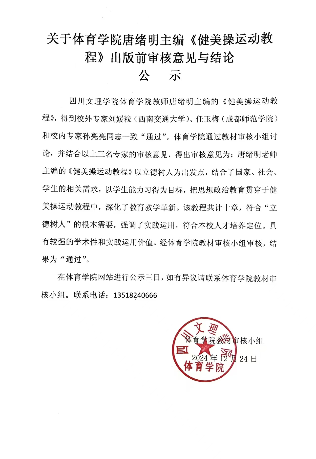 关于唐绪明老师编写的教材公示