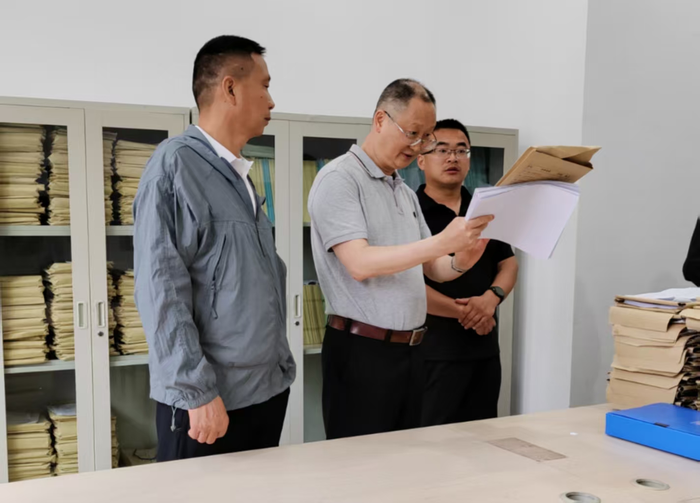 熊兴中首先到本科教育审核评估资料室,询问了本科公司产品审核评估相关材料的准备情况,现场查阅了毕业论文、试卷、等材料,并结合审核评估要求,从规范性、严谨性、完整性等方面,提出了针对性指导意见。
