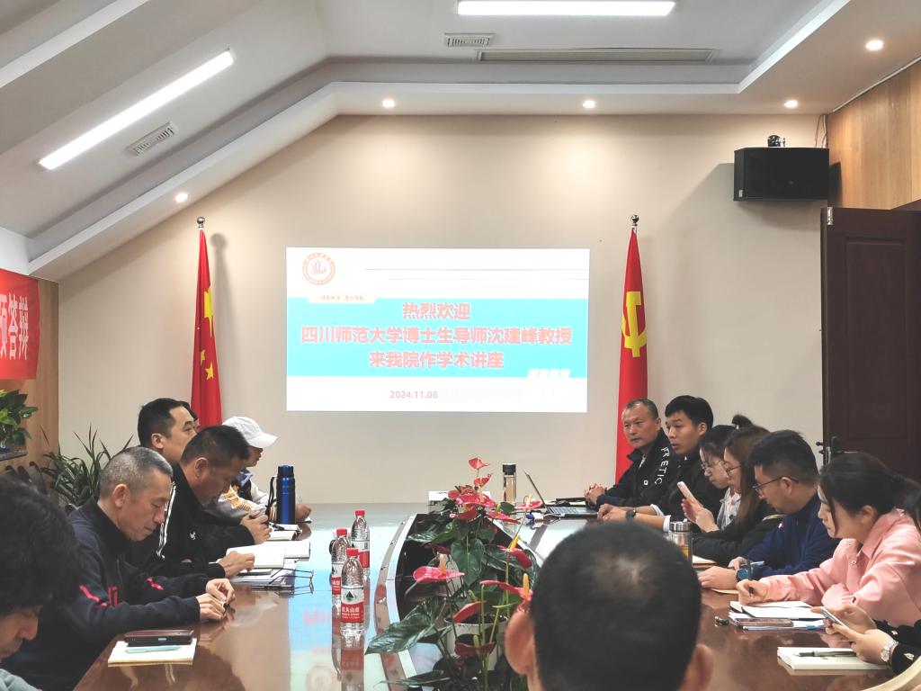 2024116日,四川师范大学betway西汉姆联平台沈建峰教授应邀在体育馆117会议室为公司教师带来了一场题为“高质量发展背景下体育学团队建设与教师专业发展”的专题讲座。本次讲座由佘涛主持,公司教师积极参与,共同聆听了这场学术讲座。