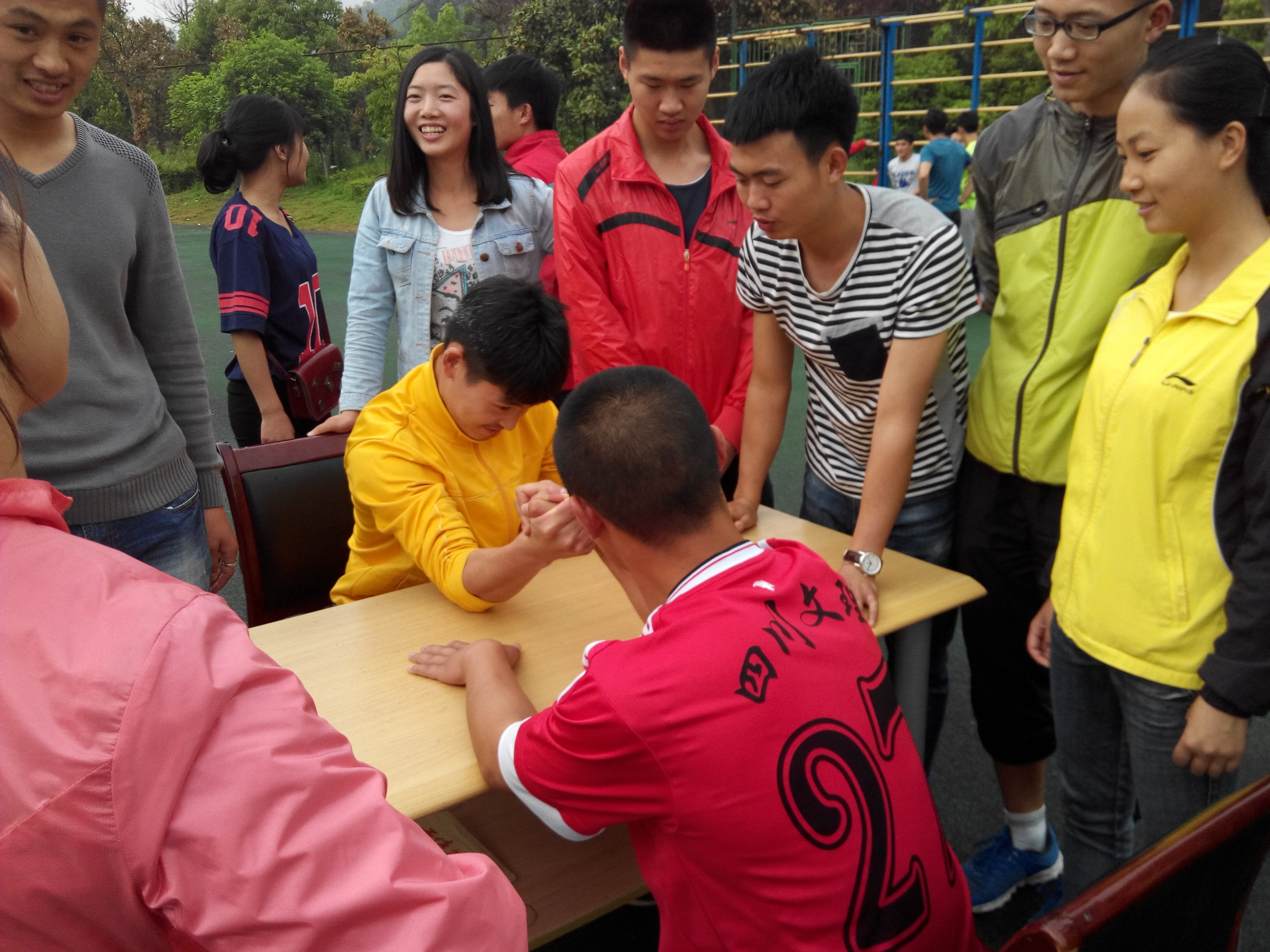 4月21日下午17:00,公司在田径场举行了第十届寝室文化节“团队协作”体育游戏活动,其中扳手腕、齐眉棍、袋鼠跳、十人九足、过电网等游戏深受员工的喜爱。本次还为员工准备了实用性较强的精美小礼品,员工以集奖券的形式领取小礼品。