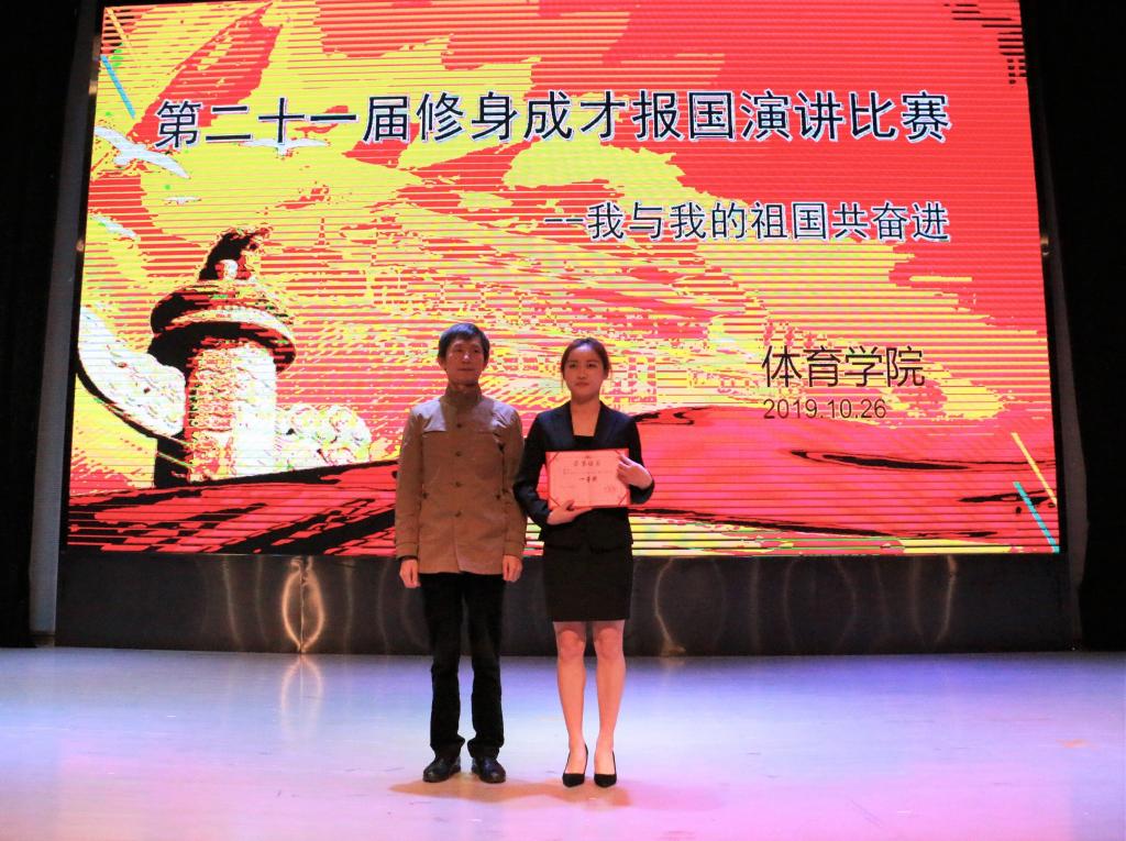 主持人宣读演讲比赛规则后正式开始。演讲过程中选手们精神饱满,感情充沛,自信十足,以《永葆爱国青春,年轻担当有为》、《心有大国,赤诚报国》、《不负韶华,你我都是追梦人》等为演讲题目,例举了新中国成立70周年的阅兵仪式、中国农村留守儿童现状、个人梦想等,并结合中国历史长河、当代时政热点、个人亲身经历等方面进行阐述。选手们慷慨激昂的语言加上娴熟的演讲技巧,赢得了台下观众的阵阵掌声,更是将现场氛围推向了高潮。经过激烈角逐,最终王倩同学荣获一等奖。
