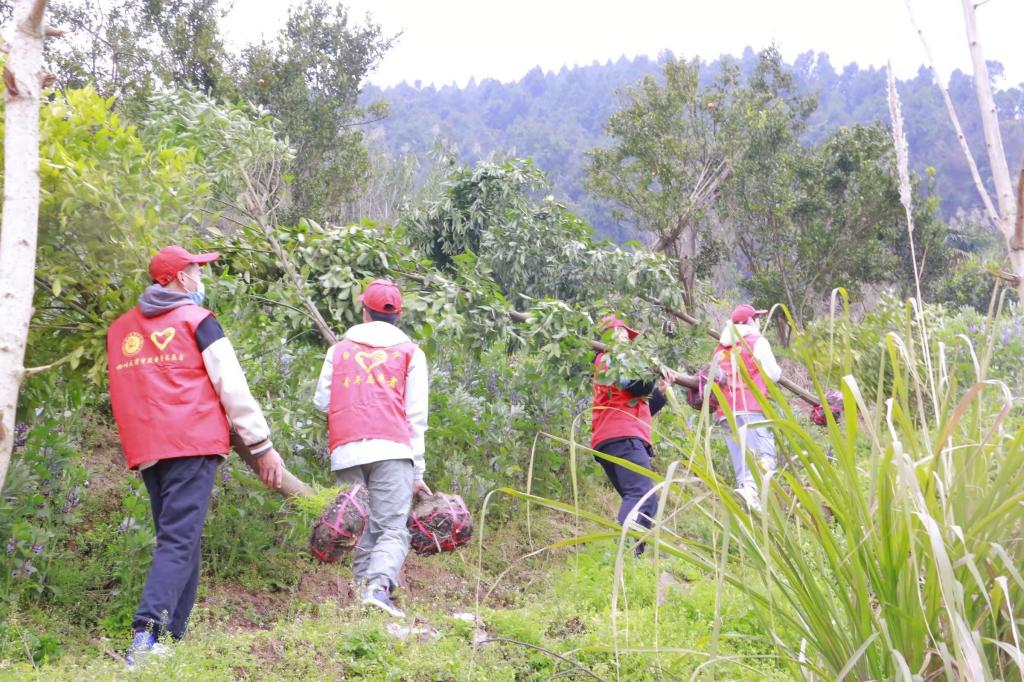 7:30,志愿者们在文传楼前集合。临行前,彭波强调:“植树活动是深入践行‘绿水青山就是金山银山’绿色发展理念的重要体现,恰逢今天是学习雷锋纪念日,希望全体同学能够不怕苦、不怕累,在实践中学习雷锋精神、感悟雷锋精神,淬炼思想、锻炼意志、检验能力,为生态文明建设贡献自己的力量。”7:50,志愿者们热情高涨,精神饱满,沿着小路来到了山脚。伴着汽车的轰鸣声,一大卡车的树苗到来了,植树活动开始了。志愿者们分工明确,相互配合。搬运组需要将天竺桂和冬青两种树苗搬运到山上400米处的植树点。小的树苗一人三、四棵,大的树苗一人一棵,即使树枝扎破了手,汗水湿透了衣,鞋裤沾满了泥,大家仍旧干劲十足、热情不减,往返于山间。在植树点,志愿者们在社区工作人员的指导下小心翼翼地学习种树,很快大家从植树外行变成了植树能手,植树现场热火朝天。经过六个多小时的劳动,5200多棵小树苗被种植在了李子树湾的小山坡上。