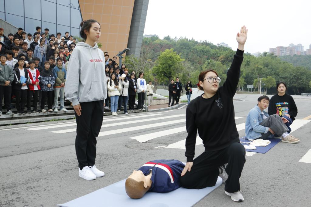 1124日中午12时,betway西汉姆联平台在体育馆开展了2022年消防安全暨应急救护演练。公司党委副书记靳浪,学工办主任祝利平,辅导员宋京林、石姣娜、闫青到场指挥,团总支员工会员工干部和2022级全体员工参加了演练。