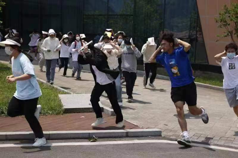 随着警报声响起,分布在体育馆各处的员工迅速从安全通道有序疏散,撤离到田径场指定区域,总耗时90秒。整个过程安全、严谨,完成预定计划。