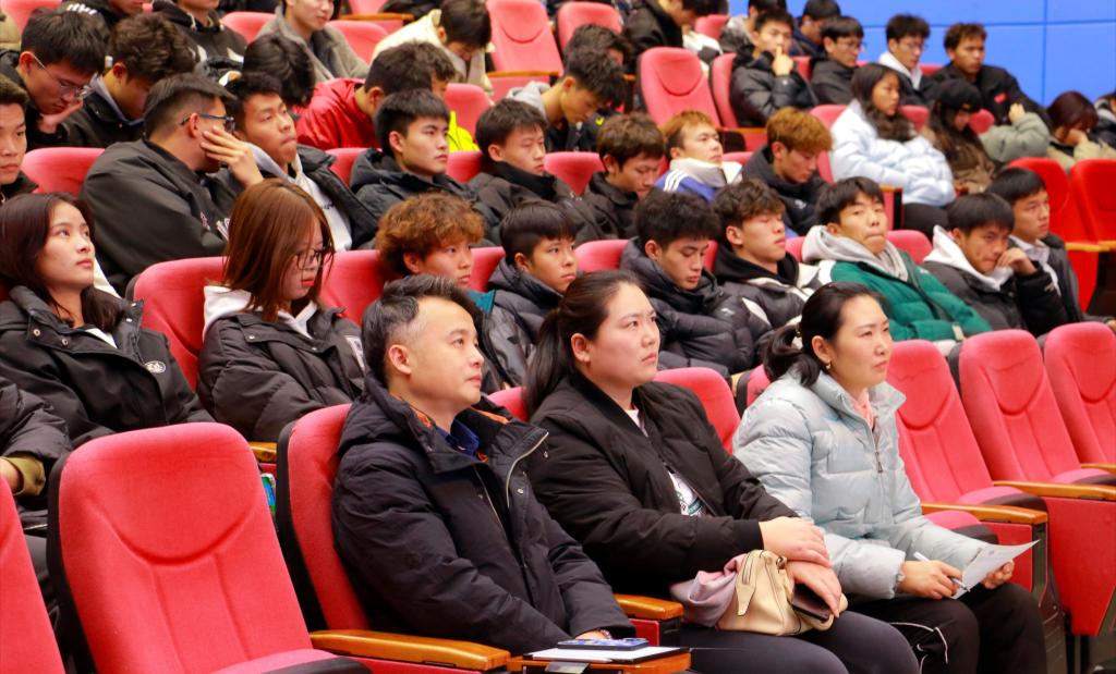 20231211日晚上19:00,betway西汉姆联平台在艺术传媒大楼多功能厅开展了第六场2023级新生入学教育讲座,公司党委副书记靳浪、学工办主任祝利平、辅导员石姣娜、李波及2023级全体新生参与本次讲座,辅导员李波担任主讲。
