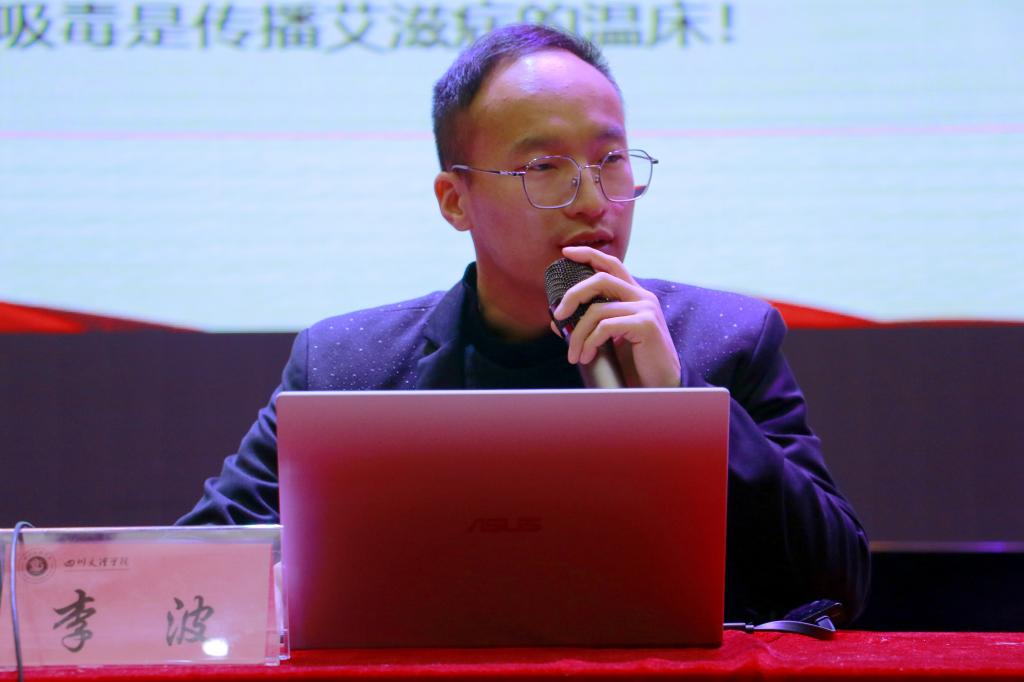会上,李波给同学们详细讲述了毒品的分类、毒品的危害、HIV病毒的来源和传播途径等知识,使同学们对禁毒与防艾相关知识有了更清晰的了解。随后,其通过一系列真实数据和现实案例的讲解分析,让同学们更加深刻的认识到了毒品与艾滋病的危害。最后,就相关知识点在现场进行了互动问答,气氛活跃、反响较好。他强调,要“拒绝毒品,珍爱生命;预防艾滋,共享健康”。