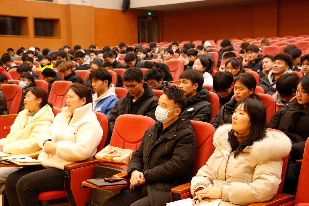 20231225日晚19:00,betway西汉姆联平台在学术报告A厅开展了第七场2023级新生入学教育讲座。公司党委书记王兆忠,党委副书记靳浪,学工办主任祝利平,辅导员石姣娜、李波、刘方芳及2023级全体新生参与本次讲座。王兆忠担任主讲。