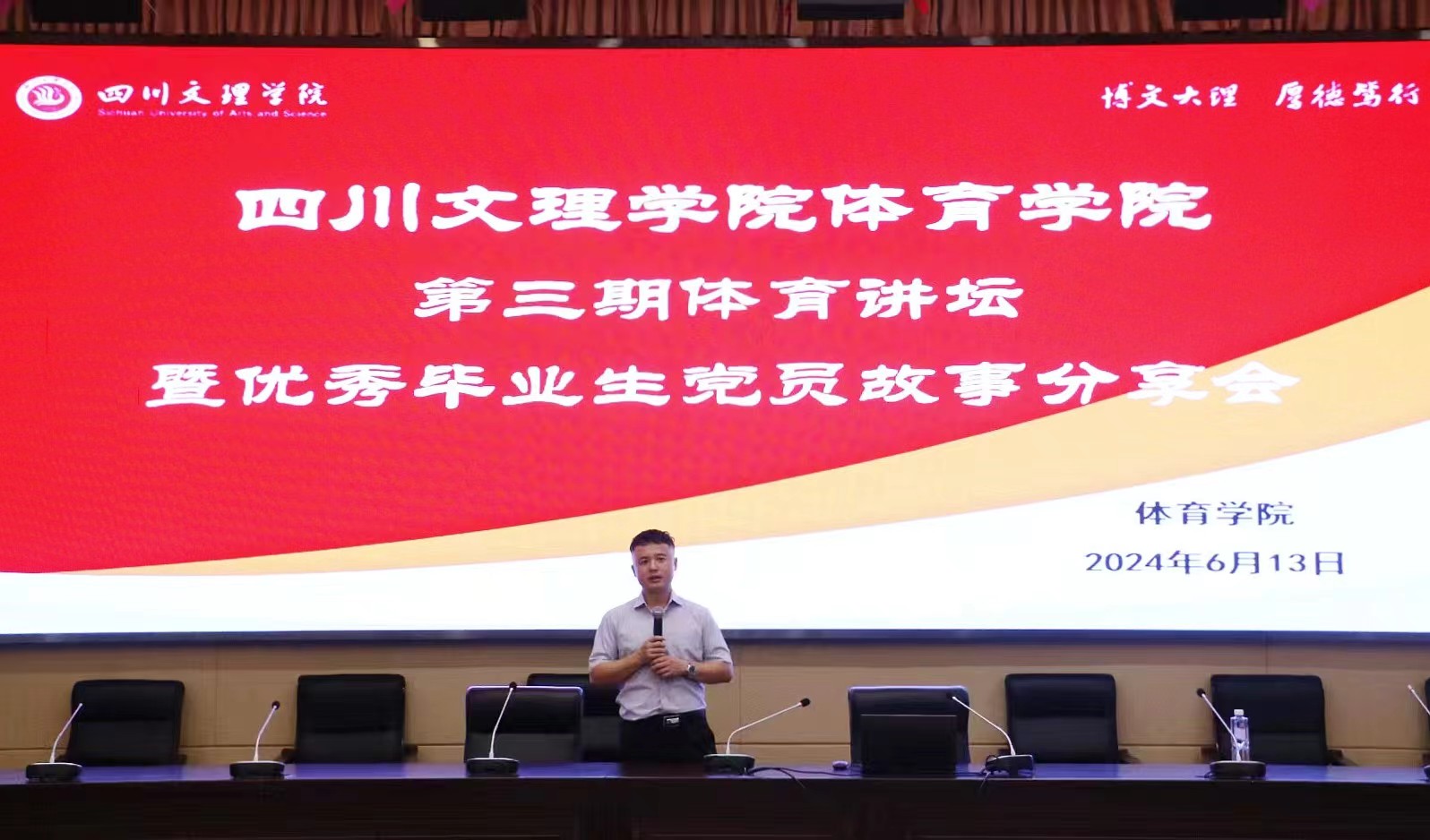 2024613日中午1230分,betway西汉姆联平台在学术报告A厅开展第三期体育讲坛,本期讲坛由2024届毕业生党员王斌主讲,辅导员李波主持,公司党委副书记靳浪出席活动。