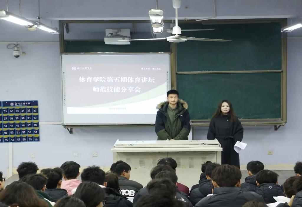 20241219日中午12:00,公司第五期体育讲坛在博文楼213214开讲,2021级员工党员江旭日、邓程稀担任主讲,2024级全体员工参与,专职辅导员李波出席活动。